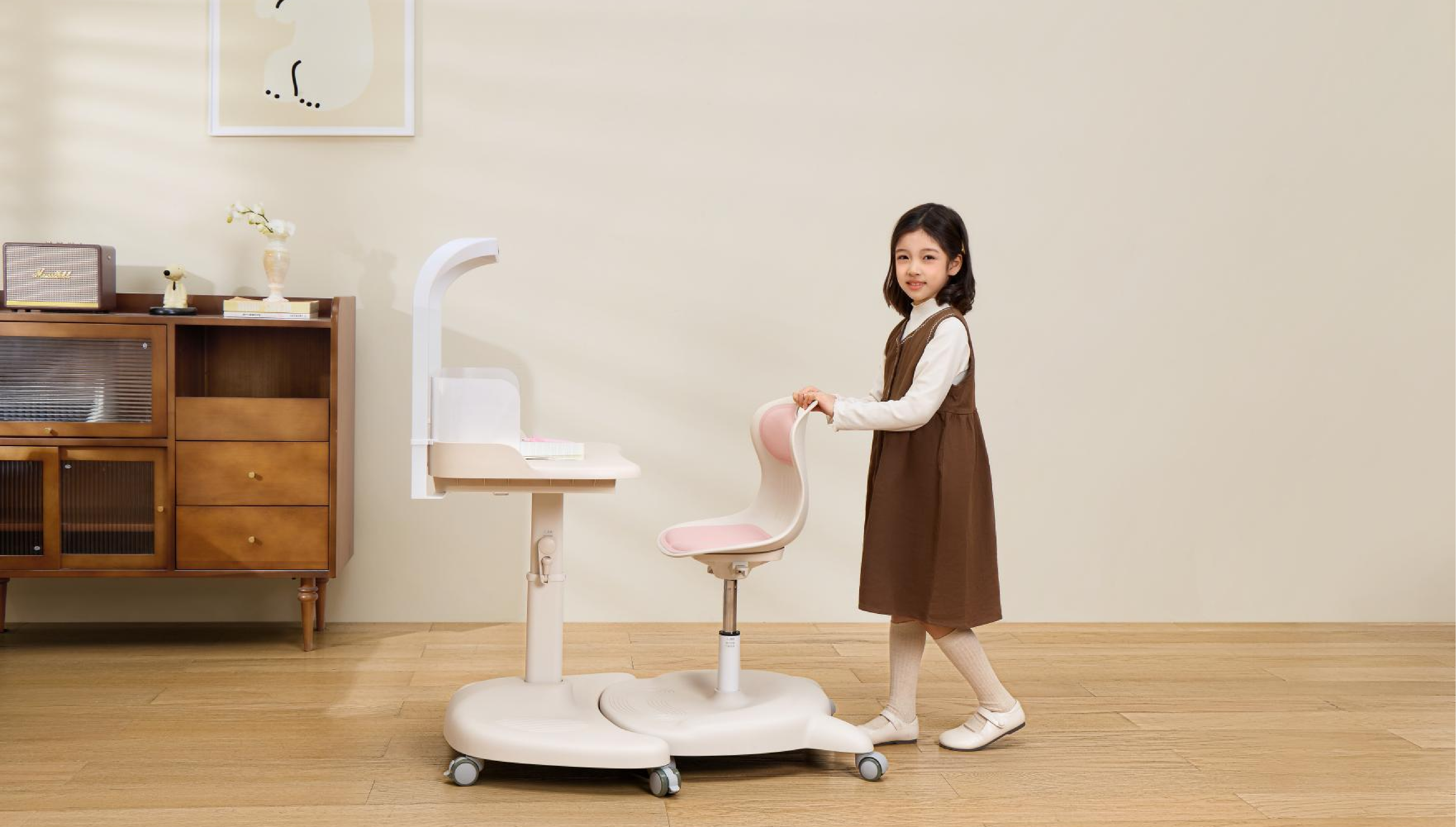 创新产品:◆ 游学巴士学习桌洞察儿童在不同场景的家居学习需求,以拥抱为灵感,创造了一套可分可合的儿童桌椅结构,一体游学,营造儿童的沉浸式学习空间,拆分独立,创造更多使用可能;