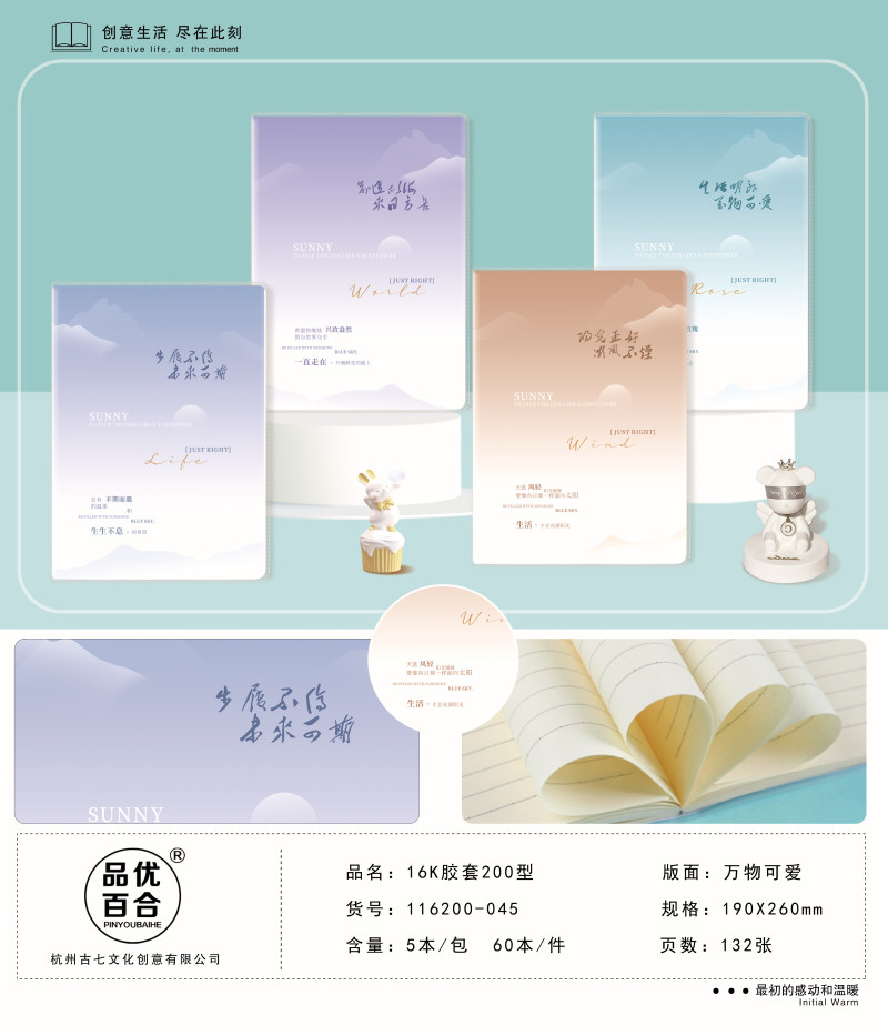 南宫市出彩文化用品有限公司创立于1997年,旗下品牌有"古七、念初语、品优百合"等品牌,是一家专业研发和制造学生本册的大型生产基地,我们的产品远销于海内外多个国家和地区,为全球30多亿学生提供优质的服务,我们要把精美的产品带入到每个学生和每个家庭当中,构建美好的书写新体现。本公司一贯坚持"质量第一,用户至上,优质服务,信守合同"的宗旨;以"合理的价格"、"高质量的产品"、"准时的交货期""良好的信誉服务"为基本准则。本公司期待成为您忠实的朋友和合作伙伴,共创互惠双赢的未来!
