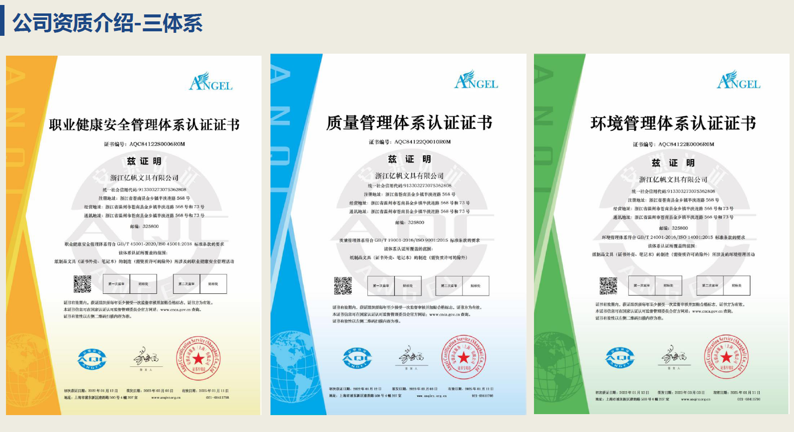 浙江亿帆文具有限公司于2007年成立,于2014年三证合一注册成立有限责仸公司,本公司位于浙江省温州市苍南县金乡镇,是一家专业生产文具皮具用品的厂家,公司厂房面积13000多平方米,拥有员工170余人,其中大部分员工为骨干级专业人才。