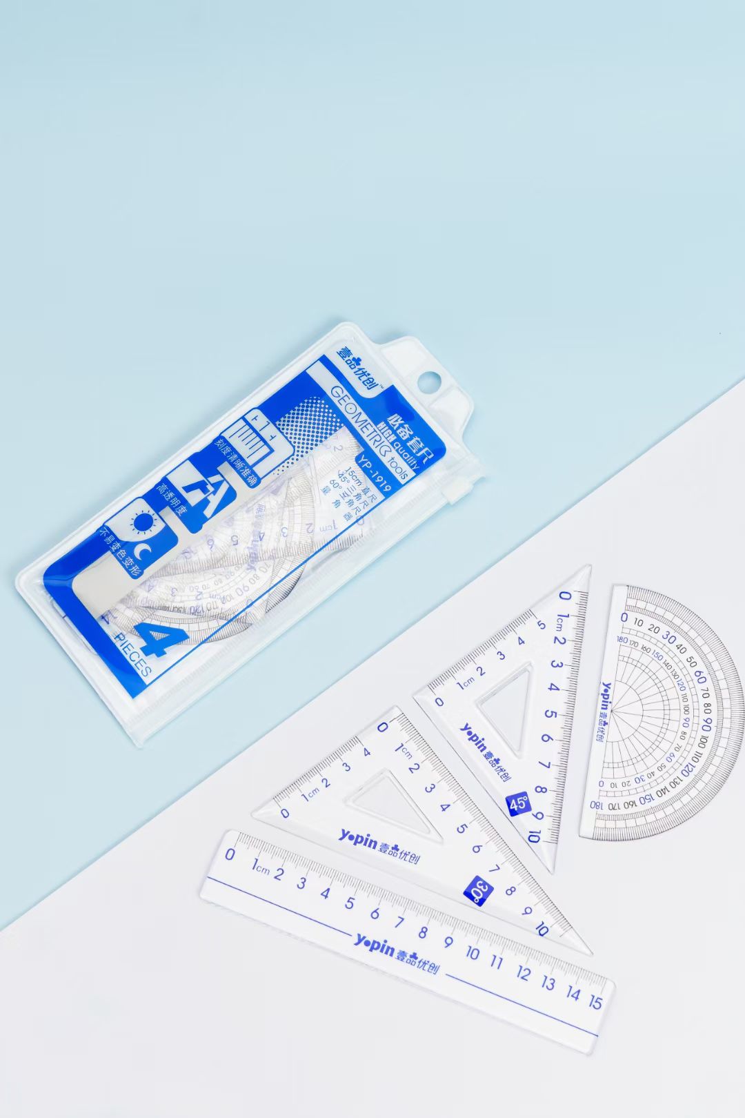 Transparent soft ruler 4 sets of multi style new stationery student ruler ruler ruler triangle ruler protractor