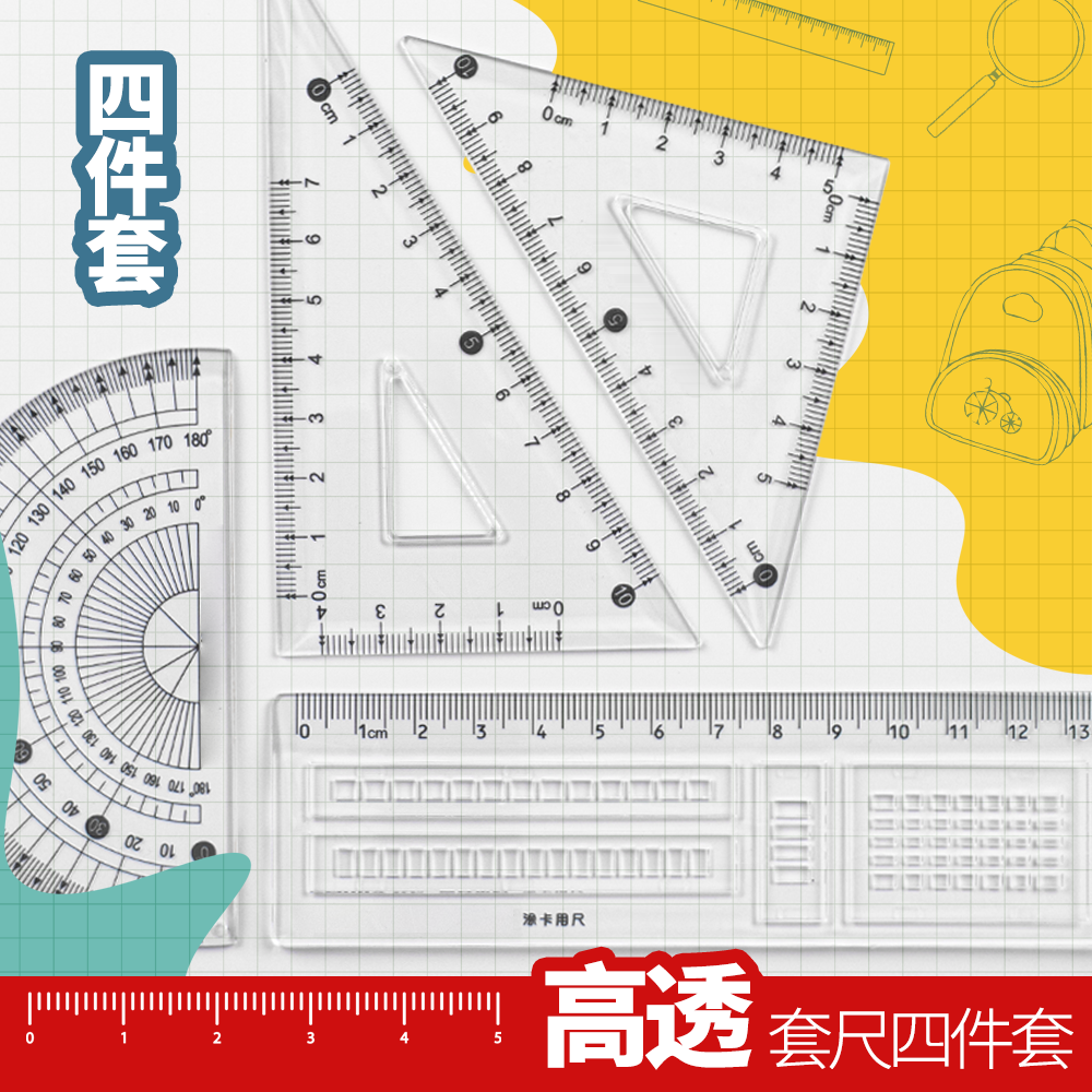 Color soft ruler 4 sets of multi style new stationery student ruler ruler ruler triangle ruler protractor