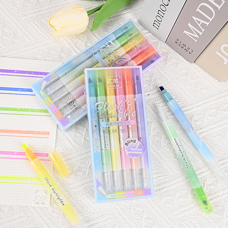 6-Color Glitter Erasable Highlighters