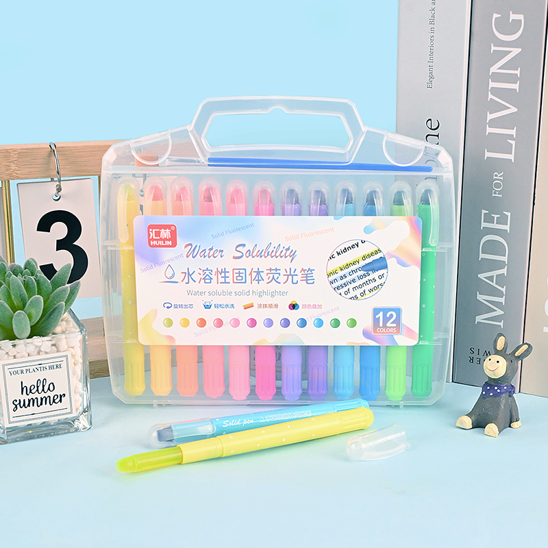 12-Color Water-Soluble Solid Highlighters