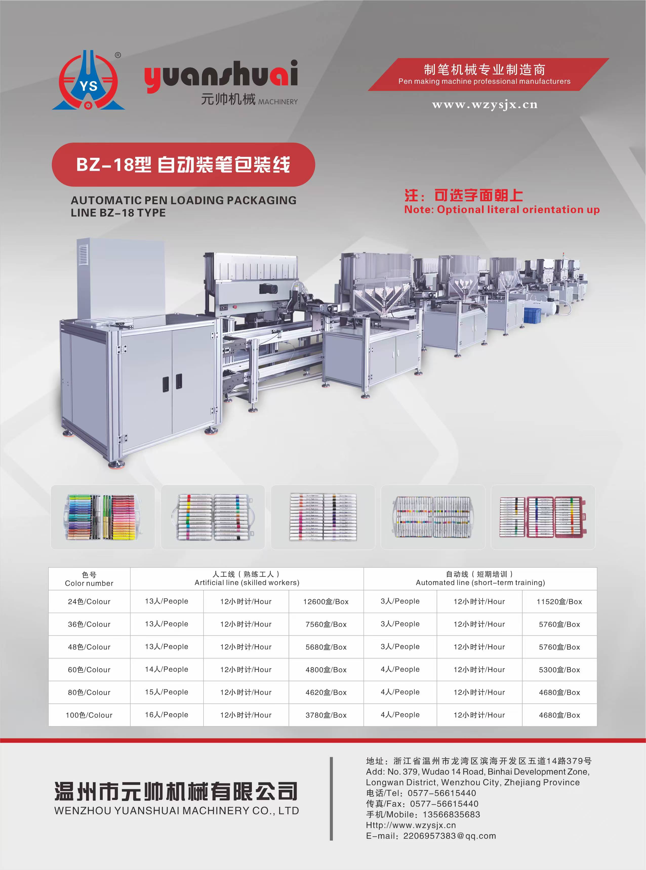 自动装笔包装线,可装色号24色、36色、48色、60色、80色、100色