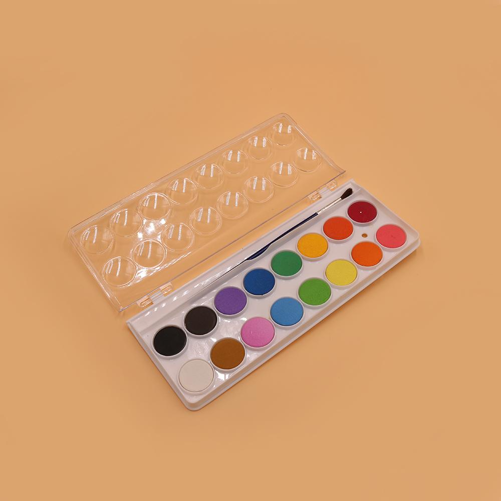 16色固体水彩入PS底座,赠送一支笔刷,附上腰封,单套收缩膜包装