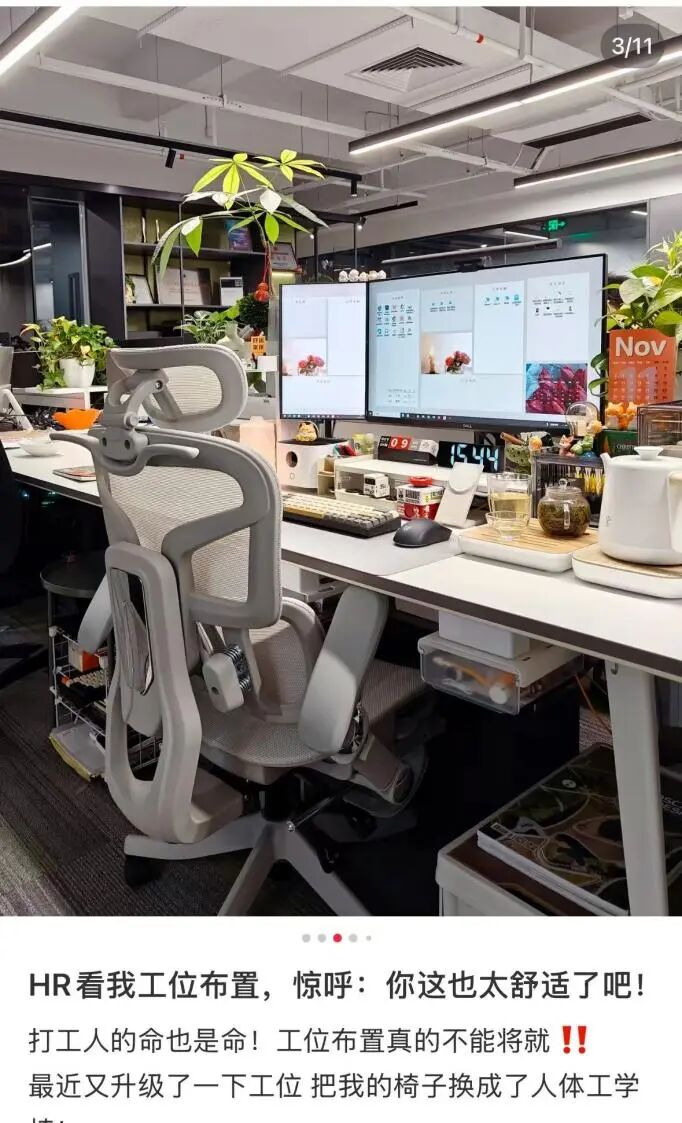可调节站立桌、千元起跳的人体工学椅、四屏联动显示器、客制化机械键盘……这些装备不再只是工具,更是一种宣言:“我可以为公司卖命,但必须按我舒服的方式。”