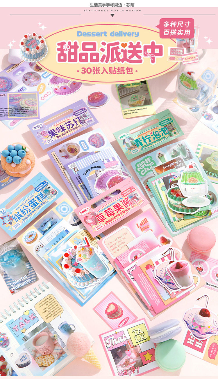 芯陌甜品派送中系列贴纸包甜心下午茶风高颜值甜点小食手账贴