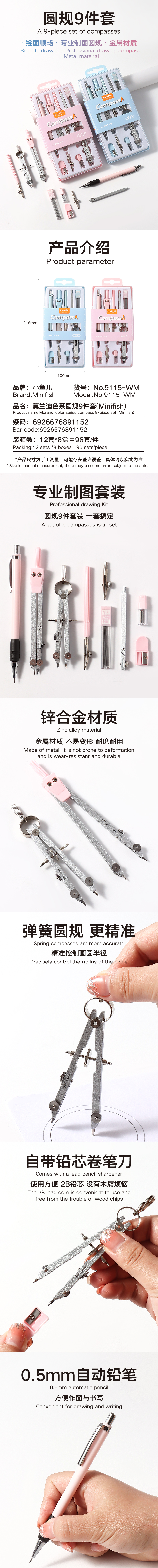 9114-WM 0.5HB Zinc Alloy Compass Set of 9 Pieces
