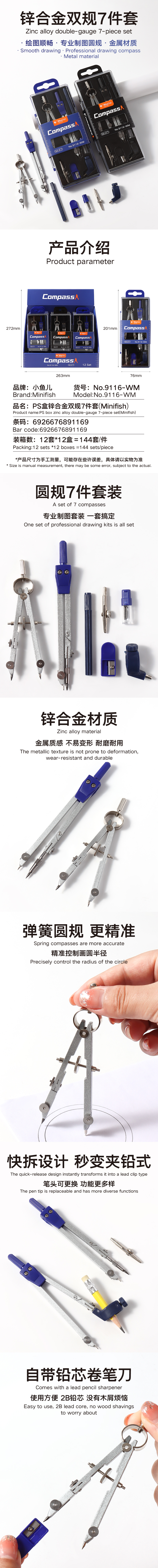 9153-WM automatic lead-zinc alloy compass set of 8 pieces