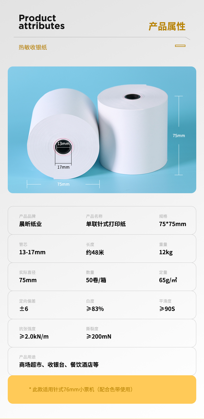 Single-layer dot matrix printing paper 7575