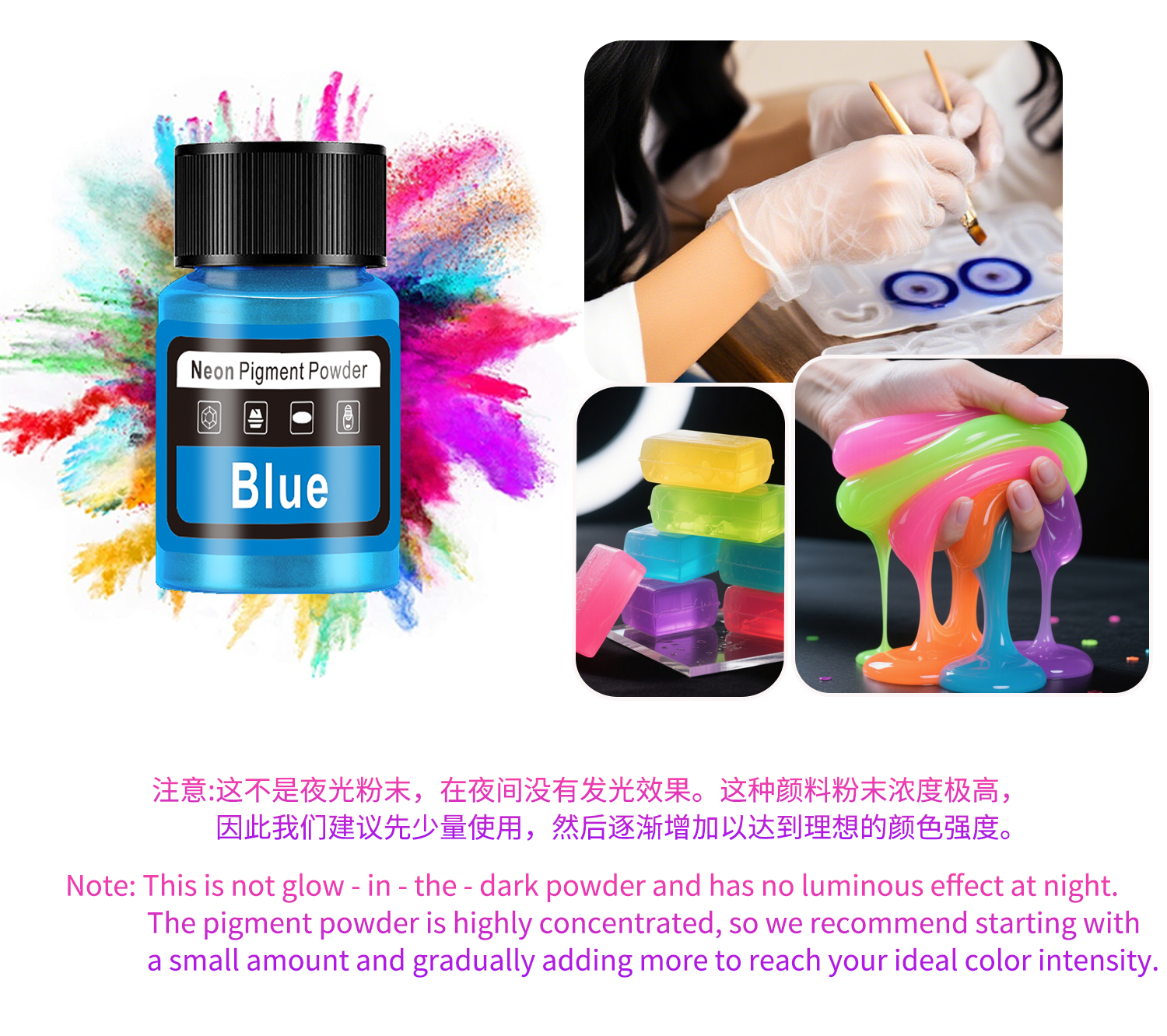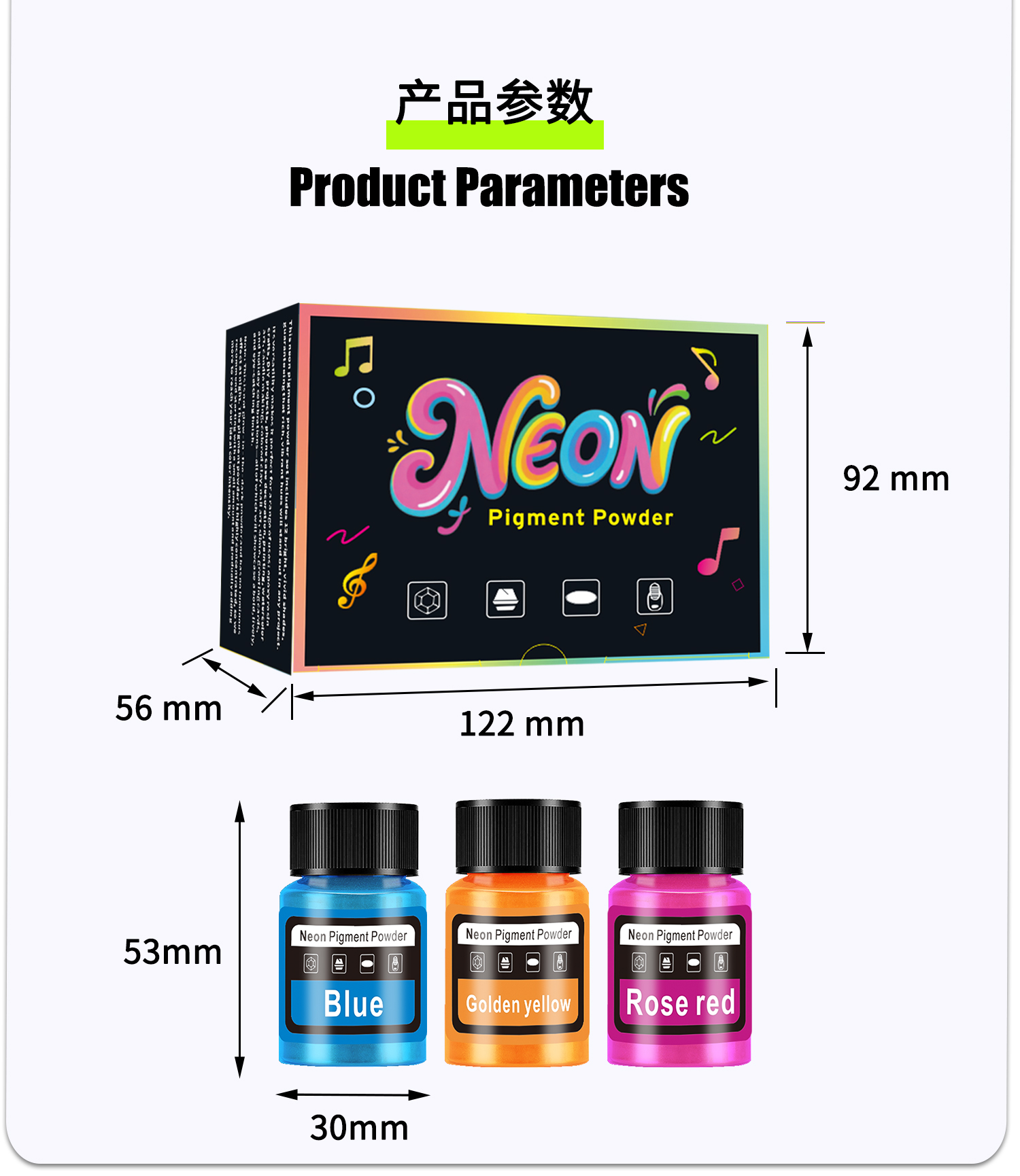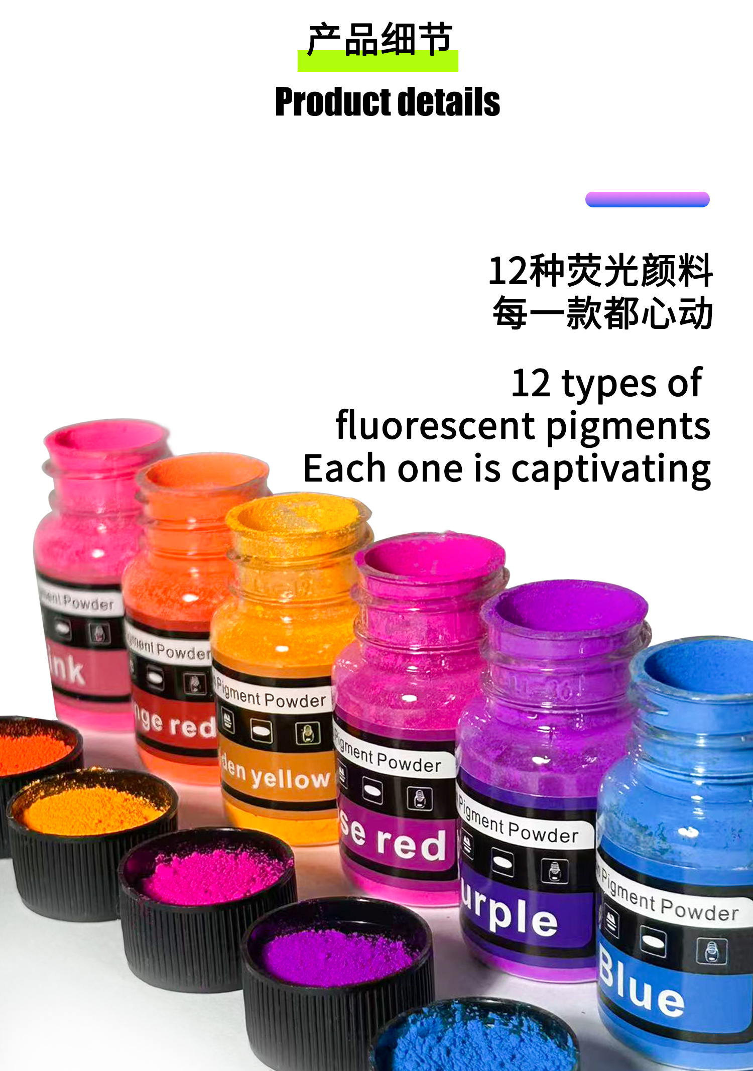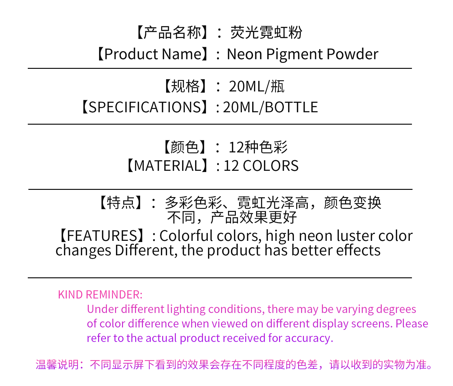 Thisneon pigment powder setincludes 12 bright,vivid shades.guaranteeingthatrich,vibrant hues will stand out in any project.