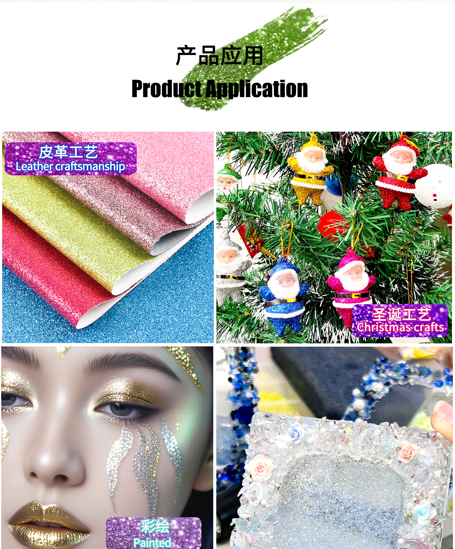 Glitter powder is suitable for crafts, stationery and sports goods, toys, handmade DIY projects, painting, and more.