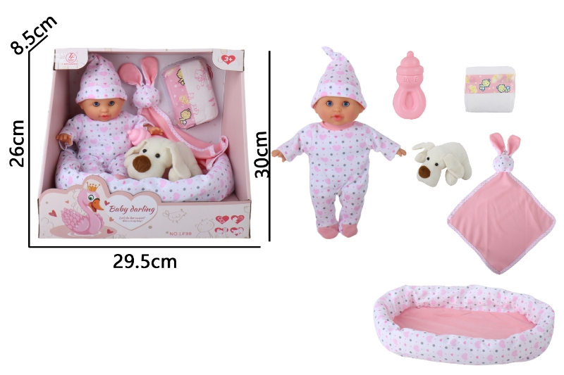 10寸无IC搪胶手脚填棉睡篮娃娃配件展示盒