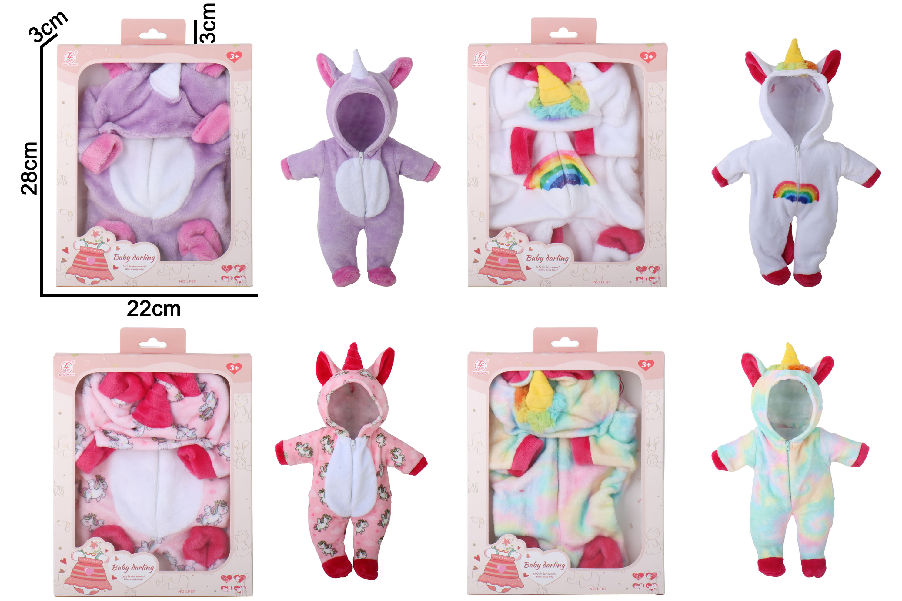 16寸娃娃独角兽衣服开窗盒四款