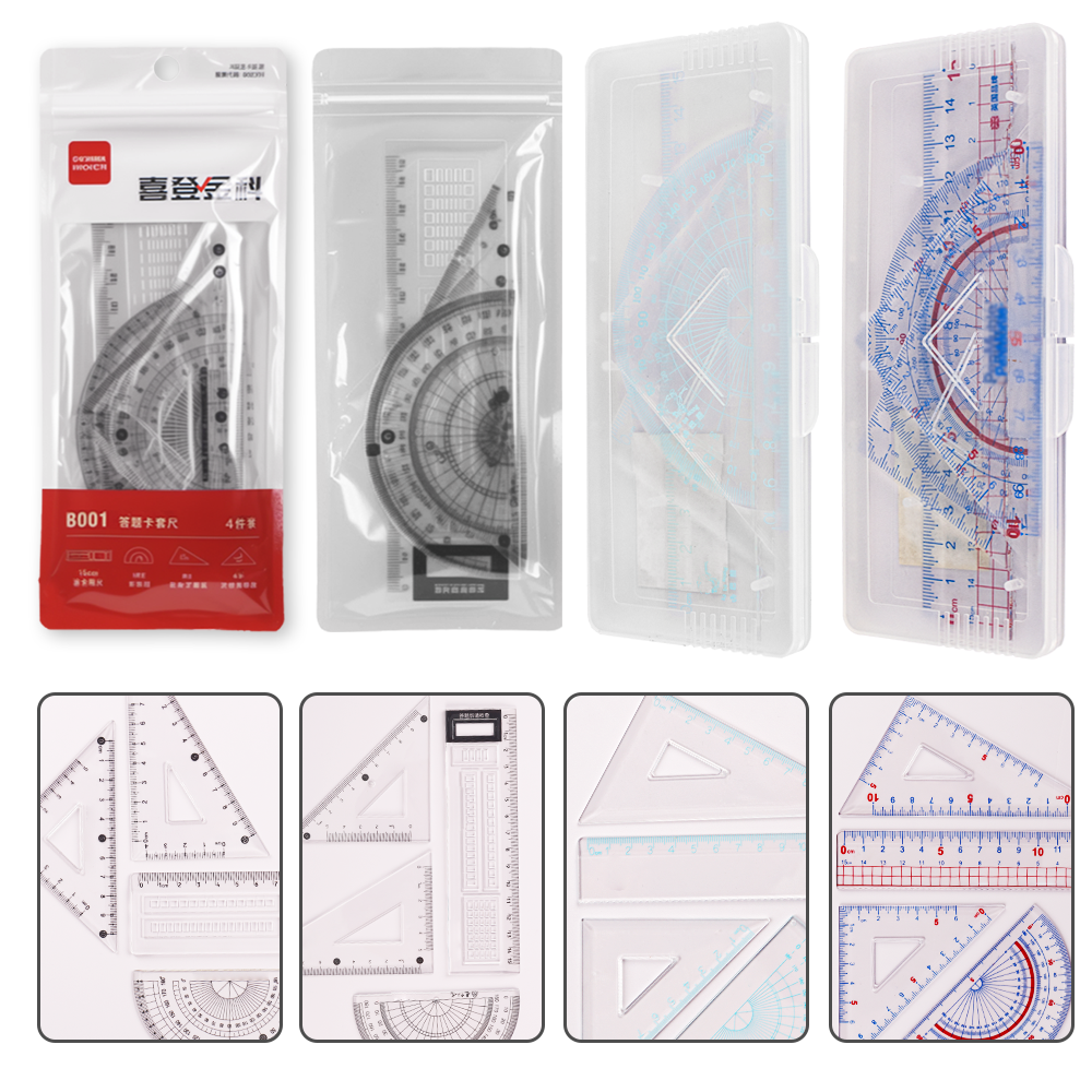 厂家直销新款透明文具绘图用具学生套尺直尺三角尺量角器套装