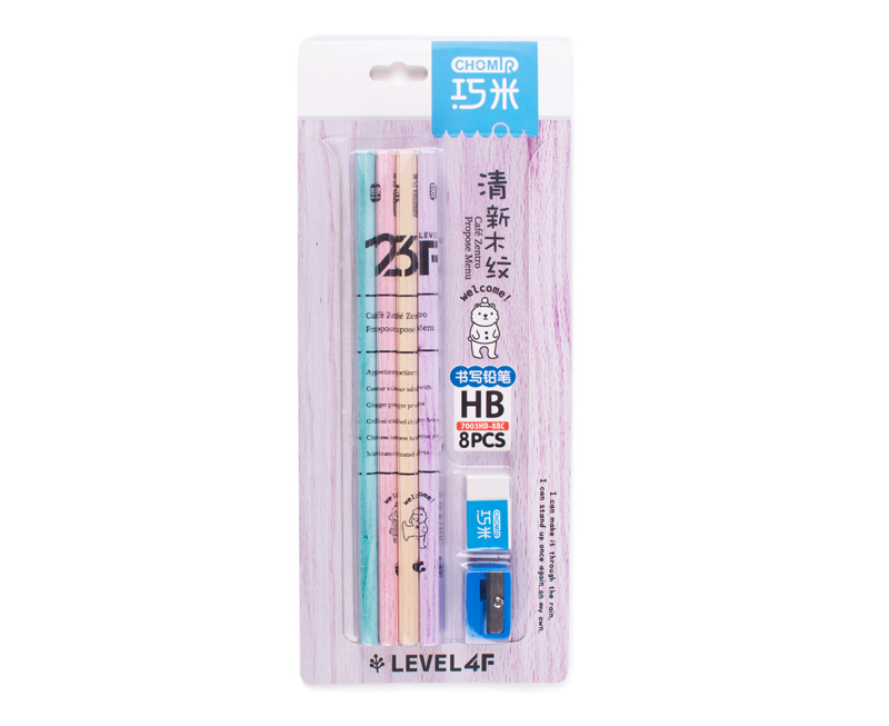 铅笔详情:7'', 椴木, 杨木,雪松可供选择, 2.0/2.2mm HB 铅芯, 哑光膜转印, 带皮头/沾头,削尖