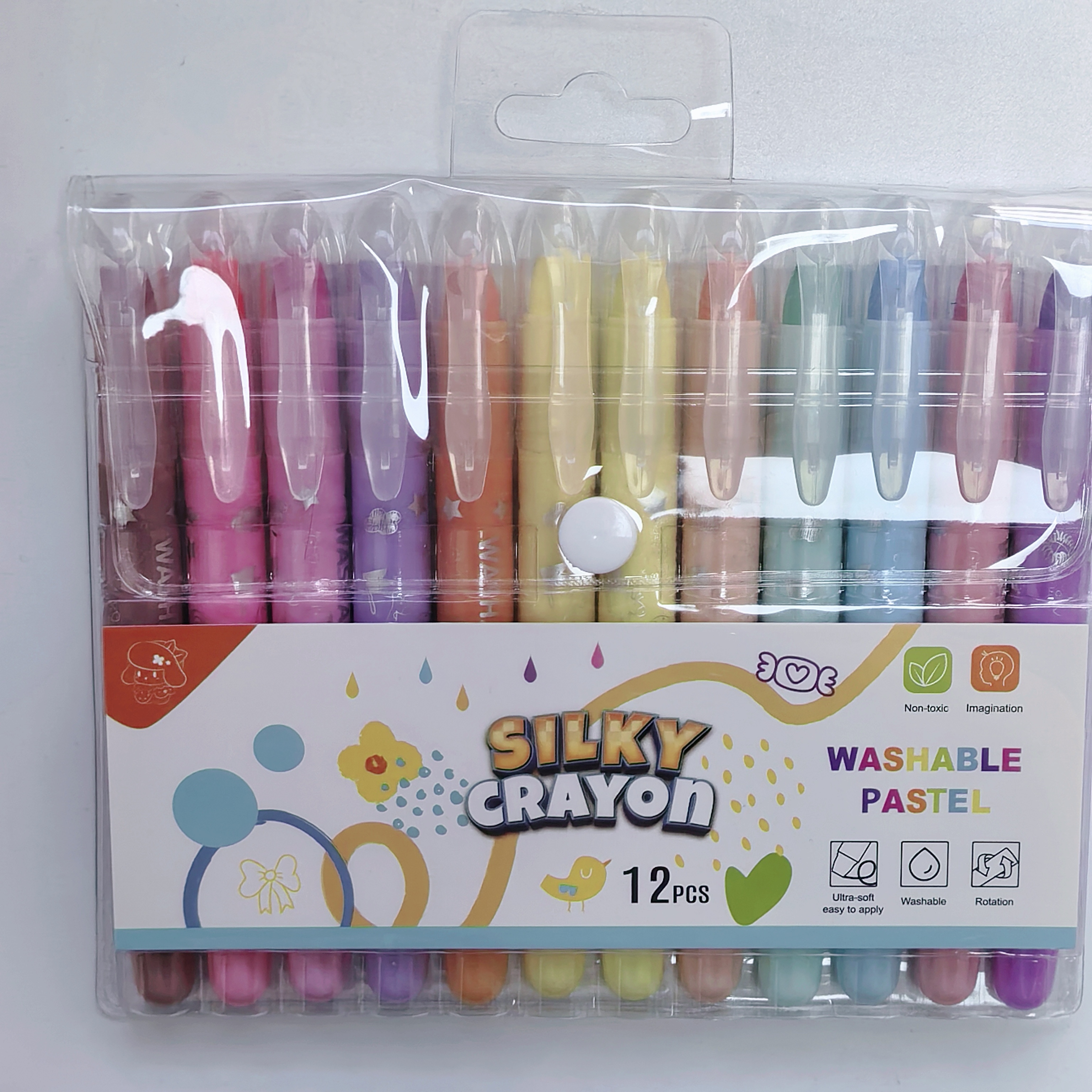水溶性丝滑蜡笔炫彩棒油画棒儿童美术涂鸦可叠色