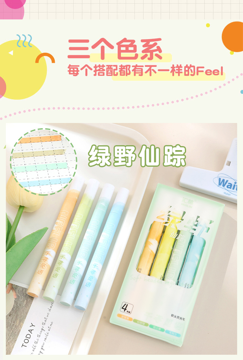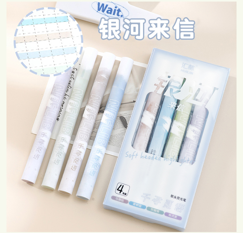 4色荧光笔软头