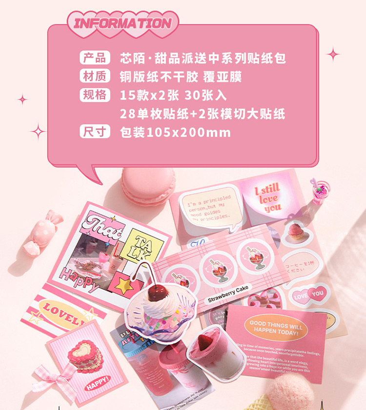 芯陌甜品派送中系列贴纸包甜心下午茶ins风高颜值甜点小食手账贴