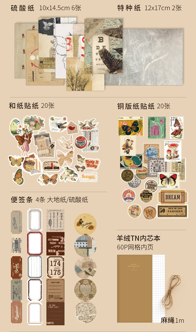 芯陌远野篇章复古素材包文艺复古背景手工DIY