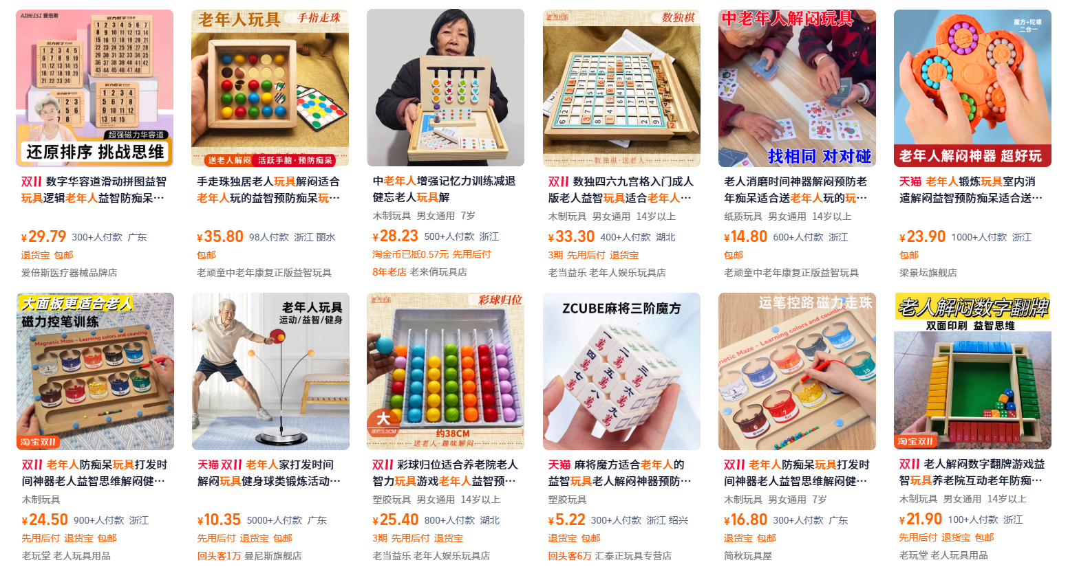 电商平台的数据更直观印证了这一趋势:2024年“适老玩具”搜索量同比增长124%,成交量增幅达70%,智能棋盘、手腕球等产品持续热销,折射出老年群体对身心健康与社交连接的迫切追求。