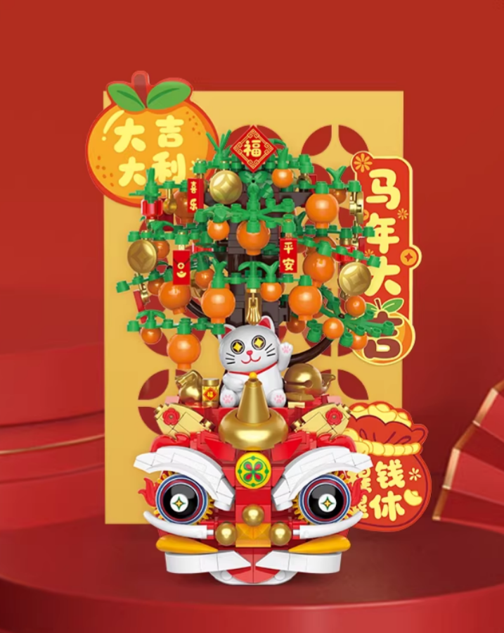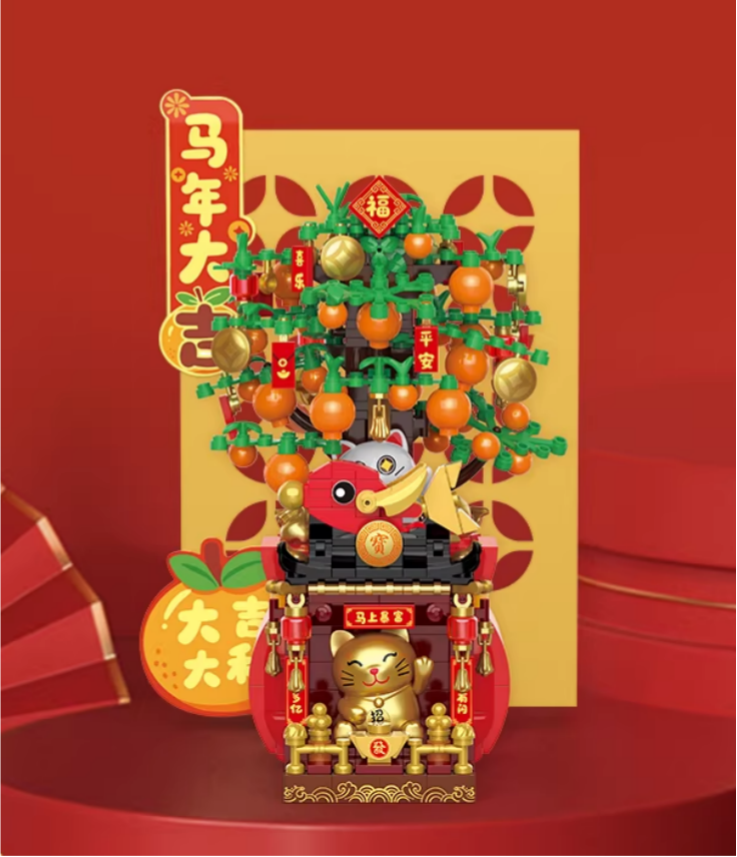 国潮吉祥积木,红金撞色尽显贵气,拼的是心意,送的是财运,自用、送礼都出彩,日子红火节节高。拼马上来财,马踏金银,福字环绕,寓意财运到,福气来,日子越拼越红火;拼招财纳福,迎万事顺意,让吉祥常伴左右,把福气“拼”回家。