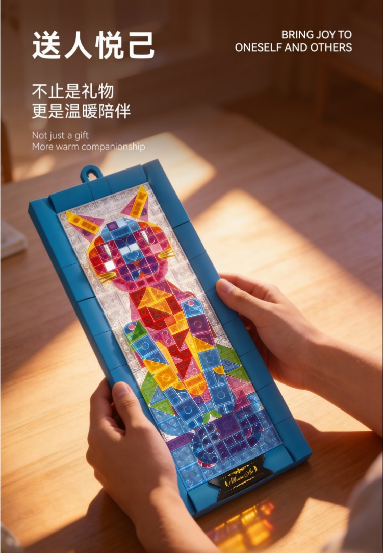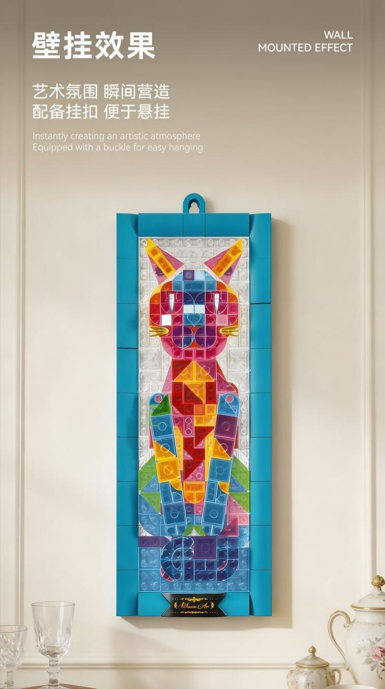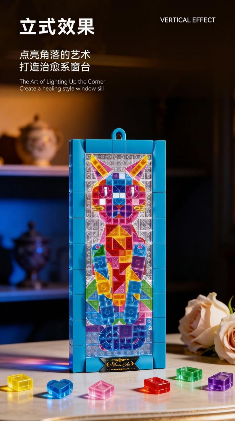 当萌趣猫咪遇上巴洛克彩窗,碰撞出独特的温柔奢华;把巴洛克的奢华与巧思藏进积木里,每一块都是浓缩的艺术精华。既可悬挂于墙面作为壁画装点空间,也能摆放于桌面当摆件,无论是北欧风家居还是复古角落,都能成为吸睛焦点。积木的互动性让艺术可触可玩,挂画的装饰性让空间更具格调,无论是自用提升生活质感,还是作为独特礼物赠送亲友,都能传递对美学与生活的热爱。