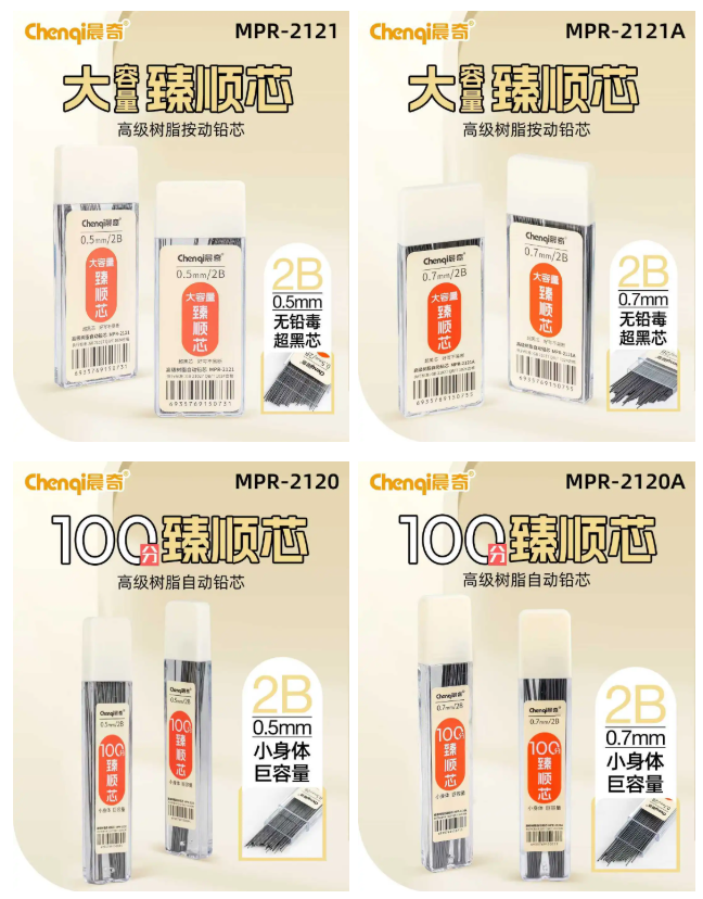 用高树脂材质,让铅芯拥有了更强的韧性和更浓的黑度。即使书写角度稍大或用力稍猛,也能有效缓冲压力,大大降低断裂风险;每一笔都颜色饱满,字迹清晰,彻底告别刮纸的刺耳声和模糊感。0.5/0.7MM双规格,学生精准书写、办公流畅落笔全适配,能兼容市面上多数标准自动铅笔,适配日系、德系、国货等主流款式。