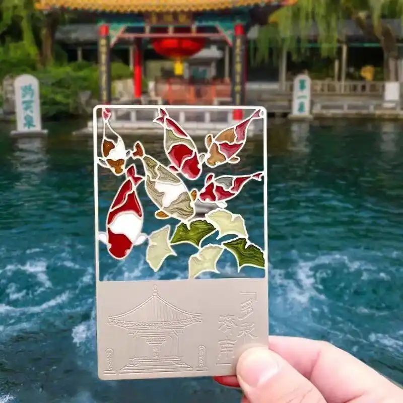 济南趵突泉文创系列中的胖锦鲤透光书签冰箱贴是旅行打卡的好搭子,将趵突泉的胖锦鲤做成书签冰箱贴,打卡收藏两不误!