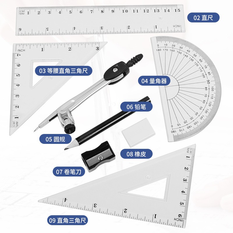 9114-WM 0.5HB Zinc Alloy Compass Set of 9 Pieces