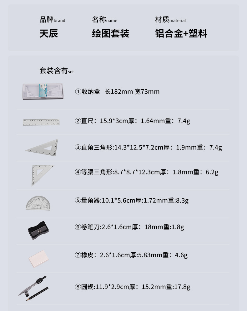 9153-WM automatic lead-zinc alloy compass set of 8 pieces