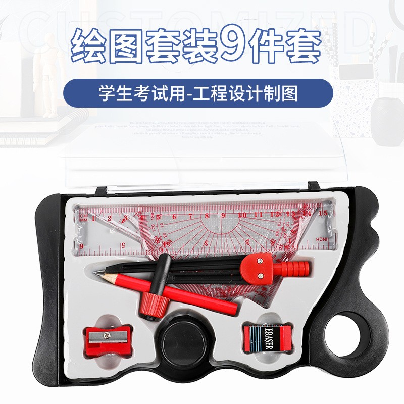 9120-WM Zinc alloy compass set of 9 pieces in two colors