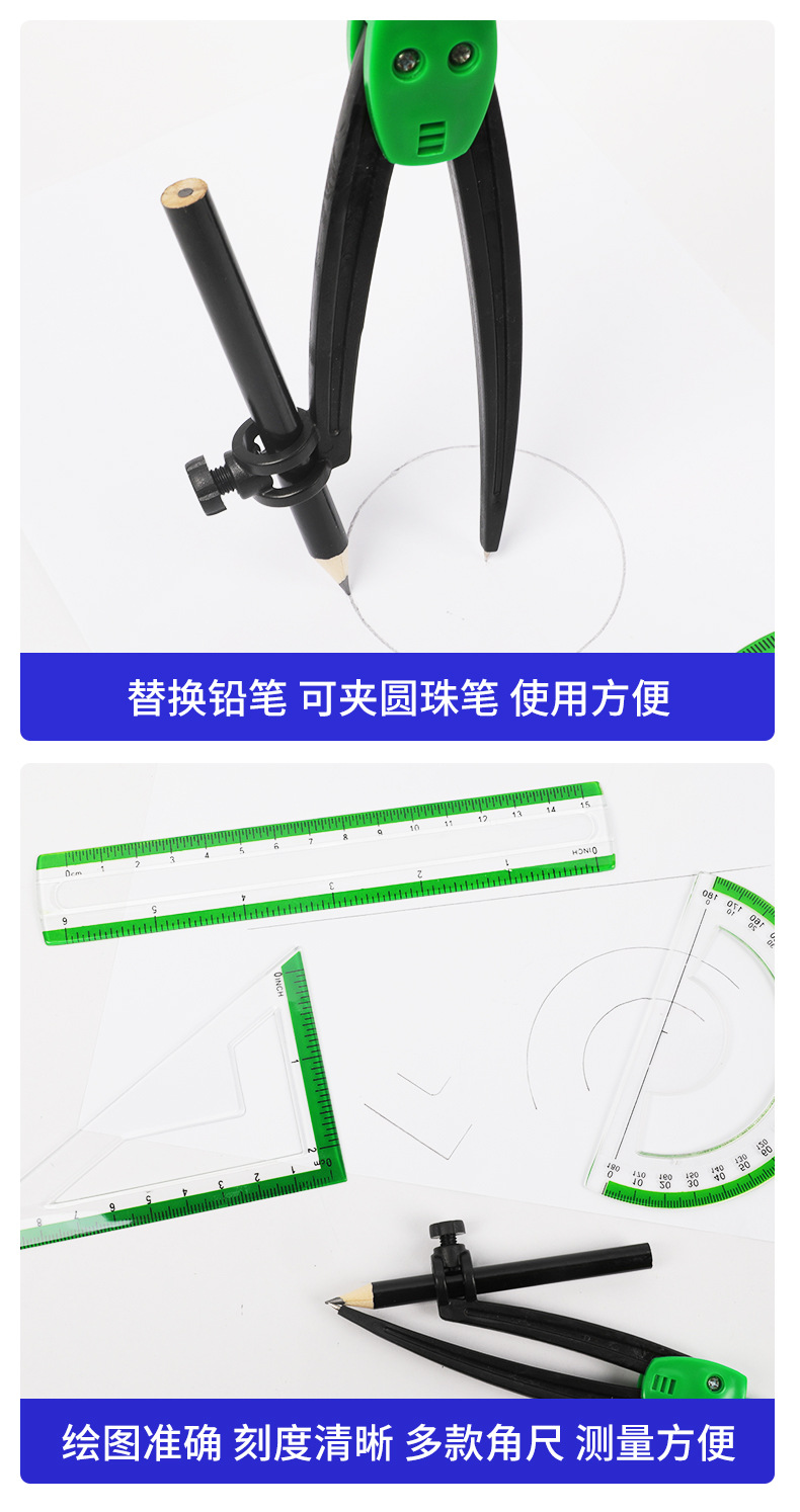 9121-WM Zinc alloy compass set of three colors - 9 pieces set